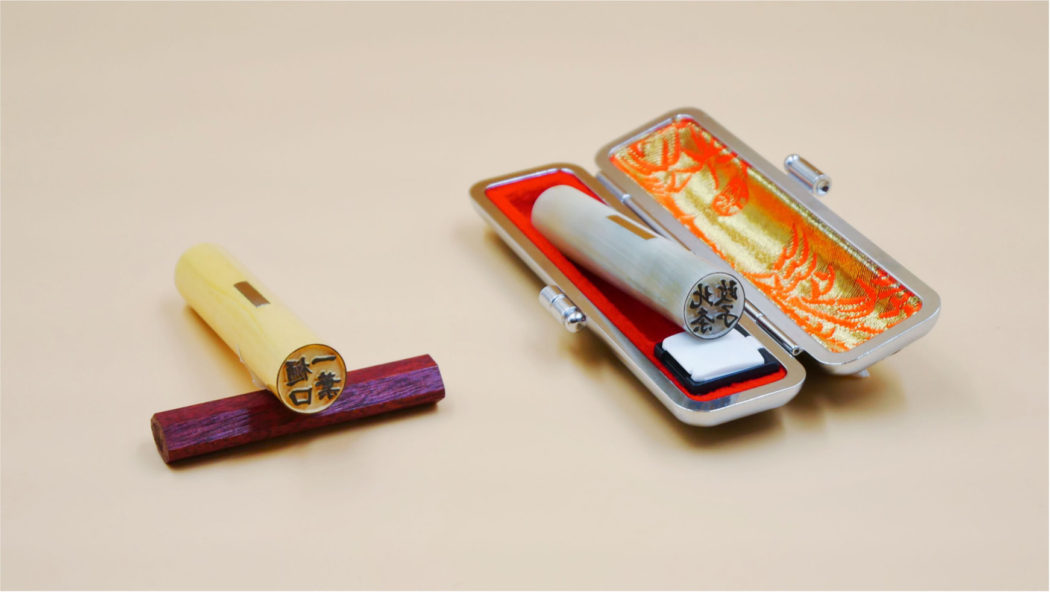材質や大きさも規定がありますが、当店では 実印として問題なく登録できる材質のもので、姓名共に彫刻したもので、男性の場合は篆書体で 15 ㎜以上のもの、女性の場合は行書体で 12 ㎜以上のものをお勧めしています。